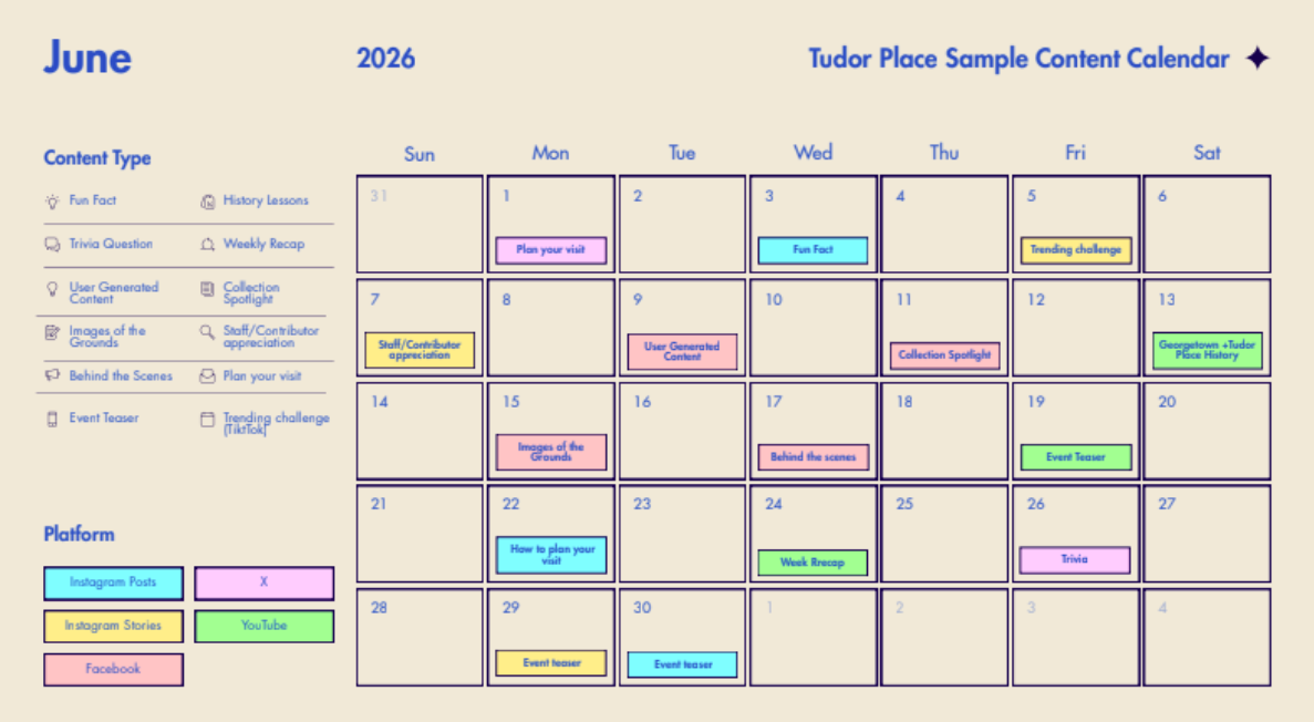 These pillars increase reach, boost engagement, and help Tudor Place meet new audiences—especially younger demographics.